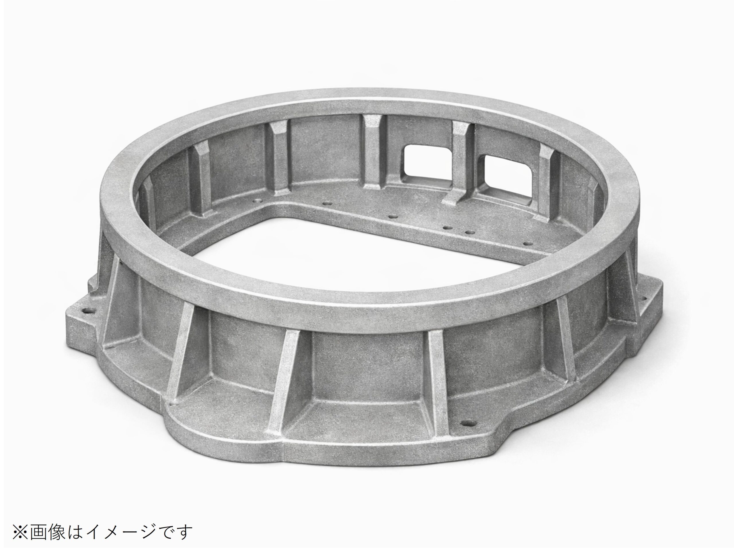 クラッチ部周辺を覆うハウジング(一般にベルハウジングとも呼ばれる部位)を砂型鋳造で小ロット量産対応しました。対象サイズは750×680×160の中大型部品で、安定供給とリードタイムが調達上の課題になりやすい領域です。